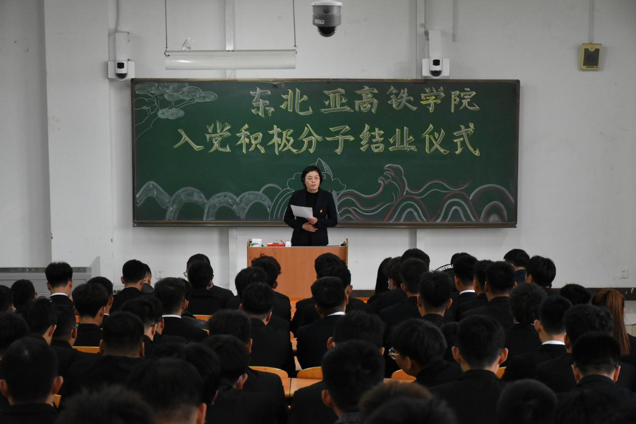 5月8日中午,东北亚高铁学院在教学楼西401教室举办了第二十八期入党积极分子骨干培训班结业式。学院党总支副书记于威、全体辅导员及第二十八期入党积极分子骨干培训班学员参加了本次开班仪式,会议由学生党支部书记张强主持。