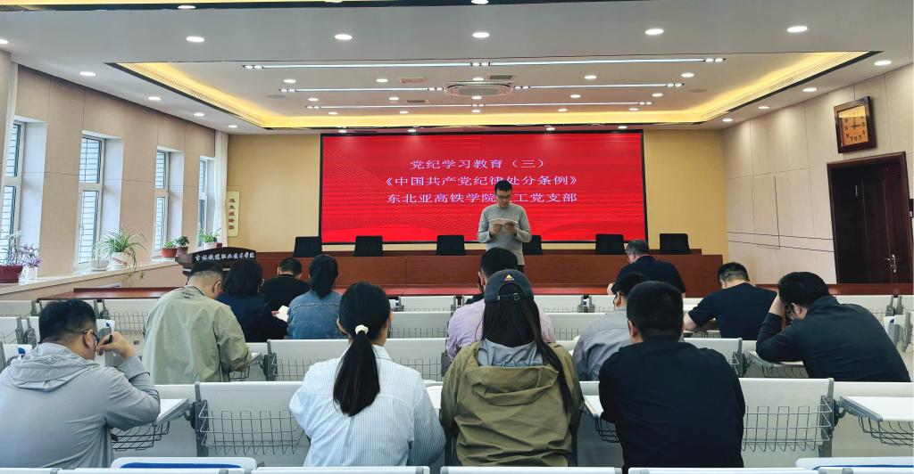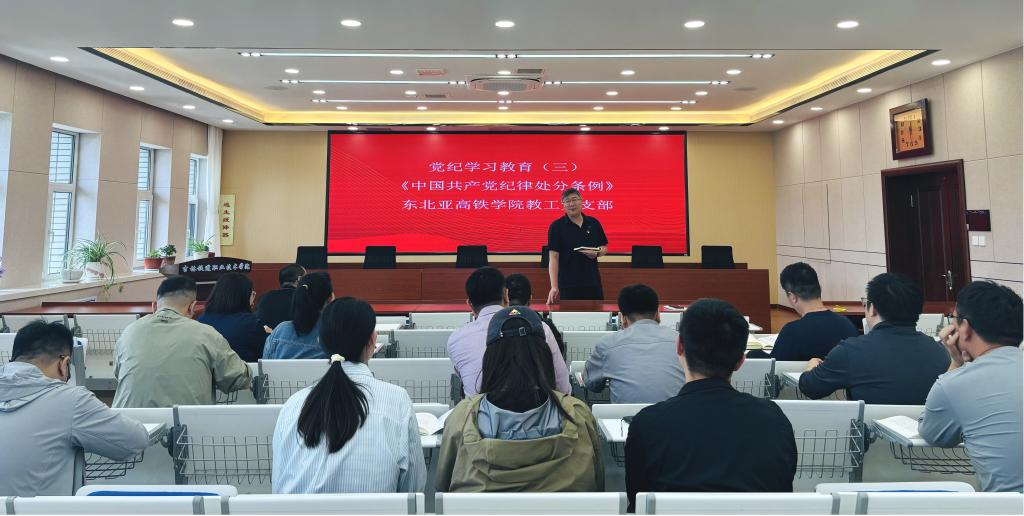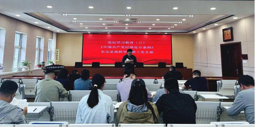 2024年6月6日下午,东北亚高铁学院教工党支部组织开展了党纪学习教育第三次集中学习暨主题党日活动。全体党员参加活动。