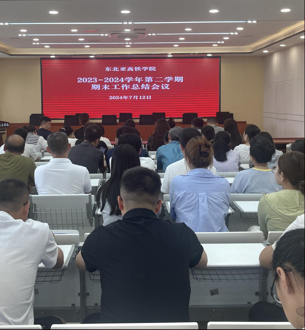 为全面总结本学期教学工作成果,谋划部署下学期重点工作目标,打造严谨的工作作风。7月12日,东北亚高铁学院在办公楼五楼会议室召开期末工作总结会议暨安全教育大会。学院全体教师参加会议。