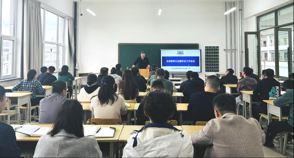 为贯彻落实学校安全工作精神,筑牢校园安全防线,营造安全、和谐、稳定的校园环境,东北亚高铁学院于11月14日召开全体教师大会暨安全工作会议。全体教职工参加会议,会议由院长段金辉主持。